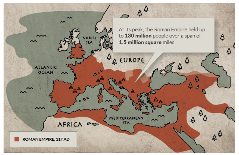 트라야누스 치하에서, 로마 제국은 170만 평방 마일이라는 어마어마한 크기였습니다.