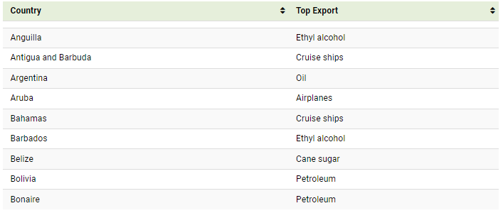 카리브해 국가들에게, 놀랄 것도 없이, 이 지역의 많은 주요 수출품들은 관광*과 연관되어 있습니다.