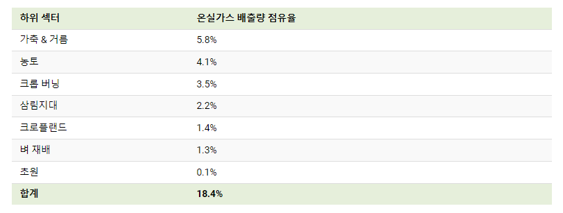 두 번째로 큰 배출물 범주는 우리가 매일 먹는 음식에 의존하는 부문이다.