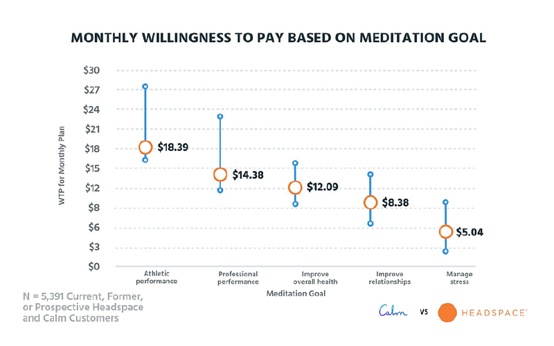 23. 사용자들은 명상 빈도에 따라 헤드스페이스와 차분한 앱의 서로 다른 구독료를 지불하기를 열망하고 있다.