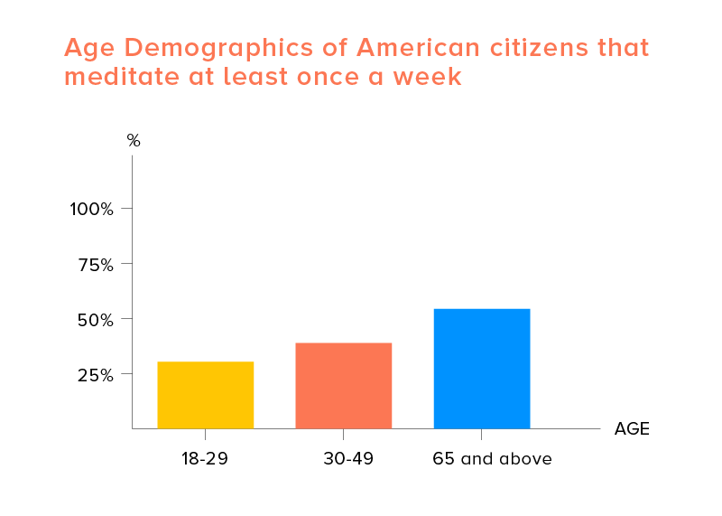 미국 지역에서 고려할 만한 명상 앱 사실과 통계자료 중 하나는 모두가 매주 명상을 실천하고 있지만 65세 이상의 사람들이 더 많은 시간을 할애하고 있다는 것입니다.